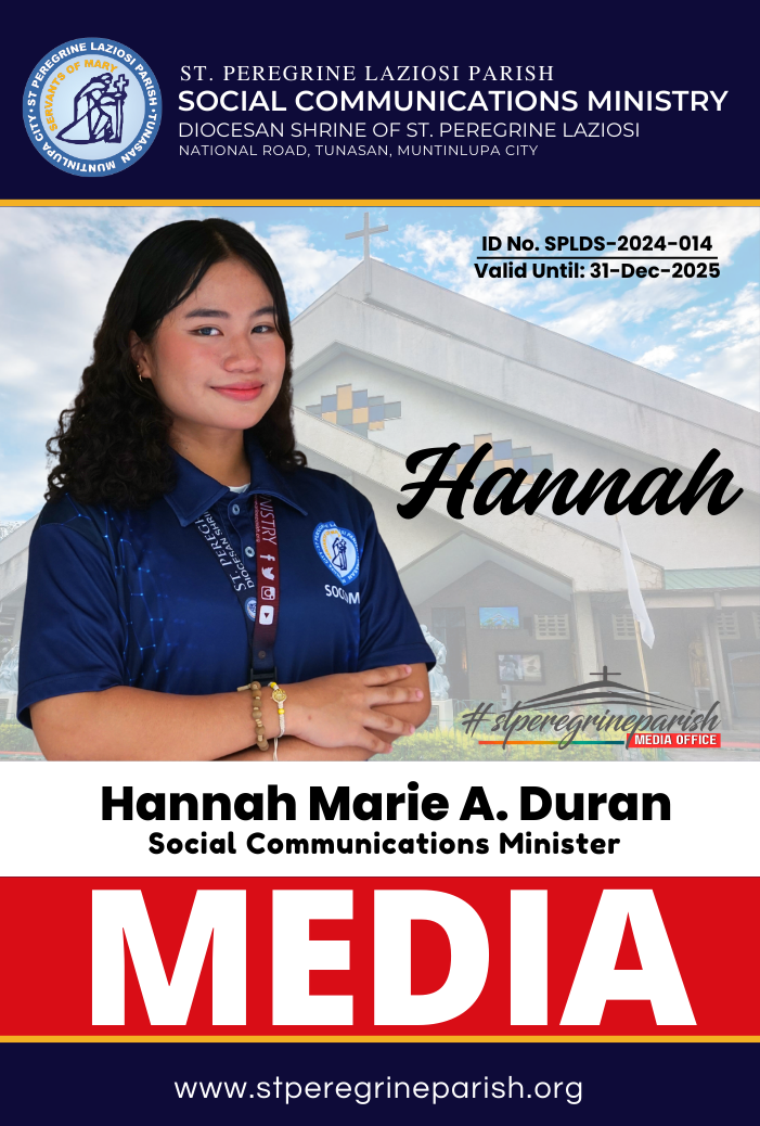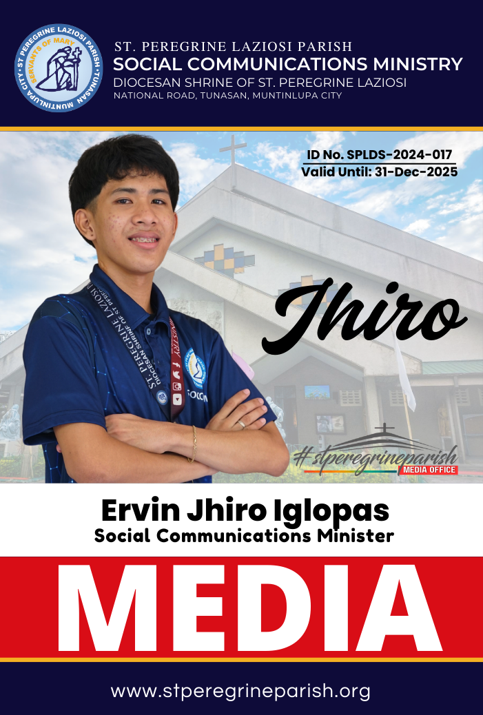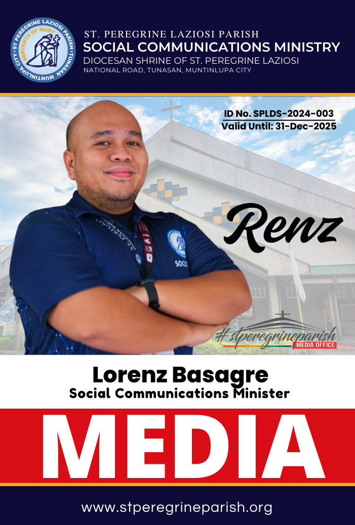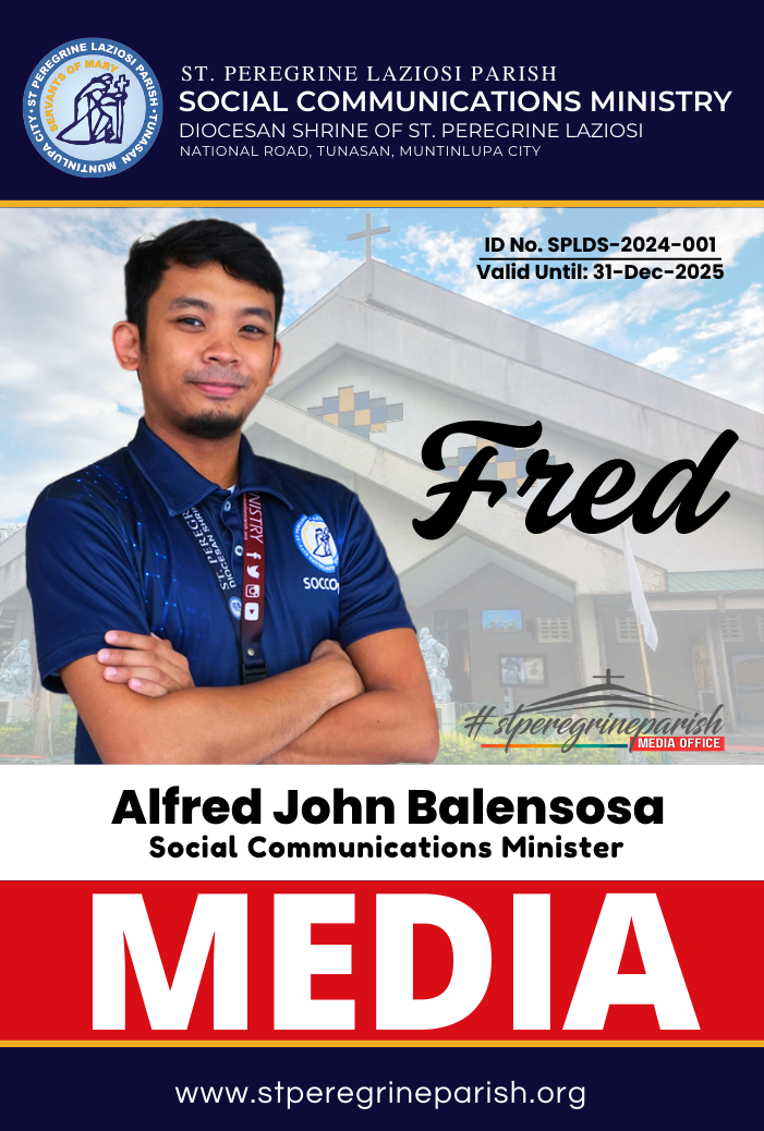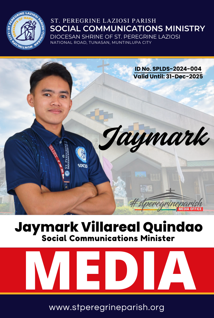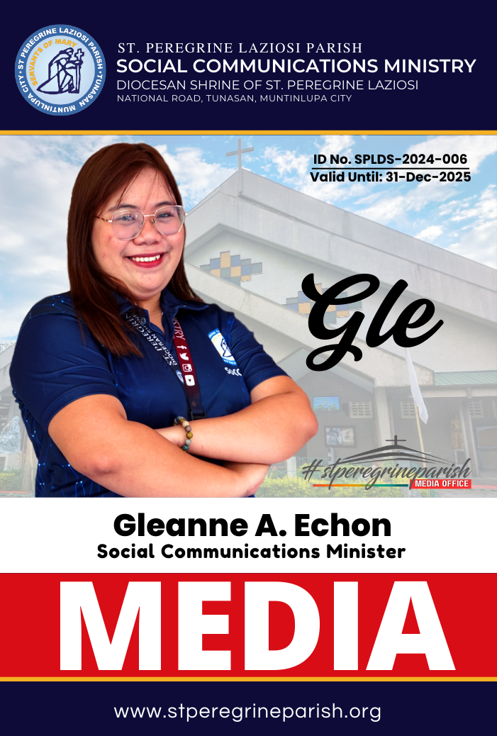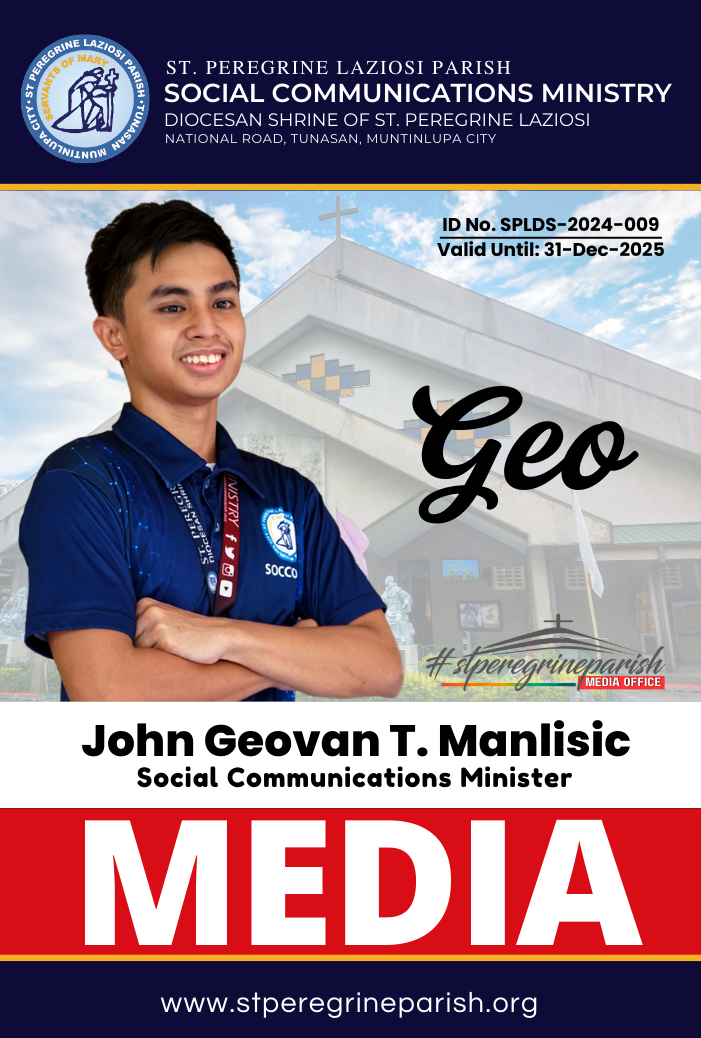THE ST. PEREGRINE LAZIOSI PARISH SOCIAL COMMUNICATIONS MINISTRY OFFICE AIMS TO PROVIDE INFORMATION ON PARISH ACTIVITIES, EVENTS & ANNOUNCEMENTS THROUGH VARIOUS MEDIA PLATFORM.